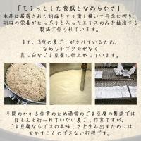 | 本品は厳選された胡麻をすり潰し挽いて丹念に搾り、胡麻の栄養がたっぷりと入ったエキスのみを抽出する製法で作られています。また3度の裏ごしがされているため、なめらかでクセがなく真っ白な胡麻豆腐に仕上がっています。 手間のかかる作業のため通常の胡麻豆腐の製造ではほとんど行われていない裏ごし作業ですが、胡麻豆腐ならではの美味しさを生み出すためには欠かすことのできない行程です。 | ||