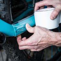 0.2mmの耐スクラッチ層の下に、1.0mmの耐衝撃層の2層構造でできているプロテクターシールです。ライド中の飛び石などの衝撃をシール内で分散し、フレームやパーツを保護します。