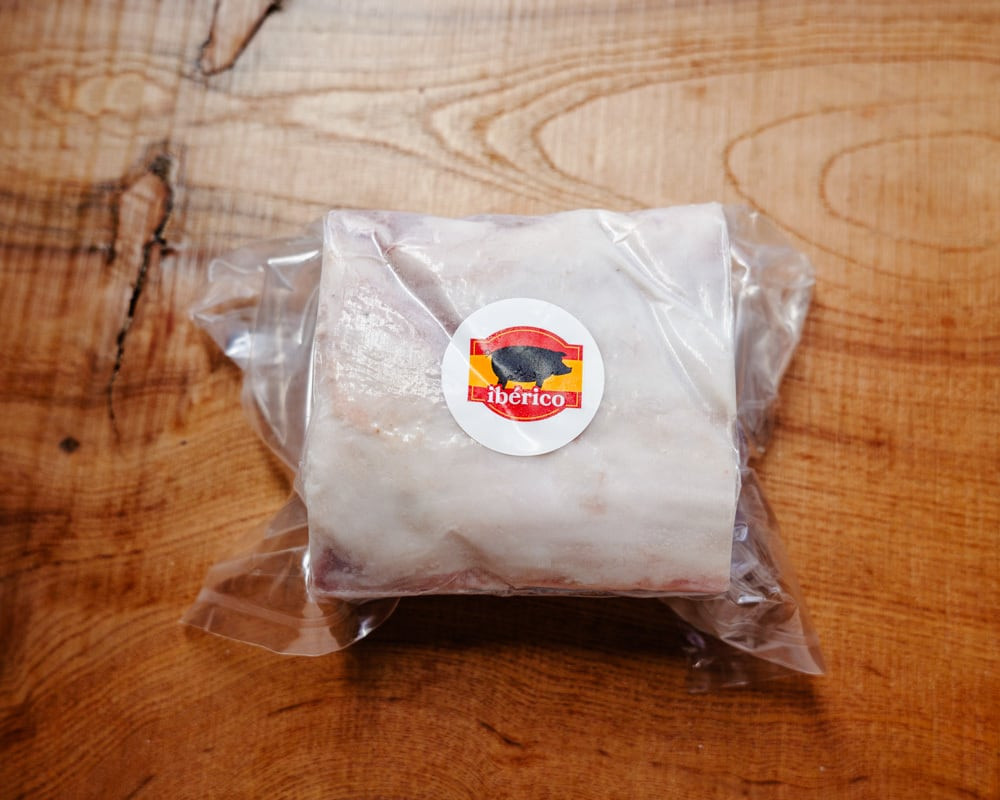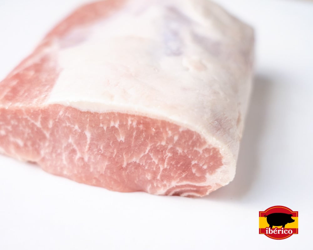 スペインが誇る黒豚「イベリコ豚」の中でも、赤身と脂のバランスが最も美しい部位がロースです。赤身はきめ細やかな肉質でしっとりやわらか、脂は軽やかで甘みがあり加熱しても肉が締まりにくく、ジューシーな味わい。焼いた瞬間に立ちのぼるナッツのような甘い香りが、ひと口目から違いを感じさせます。