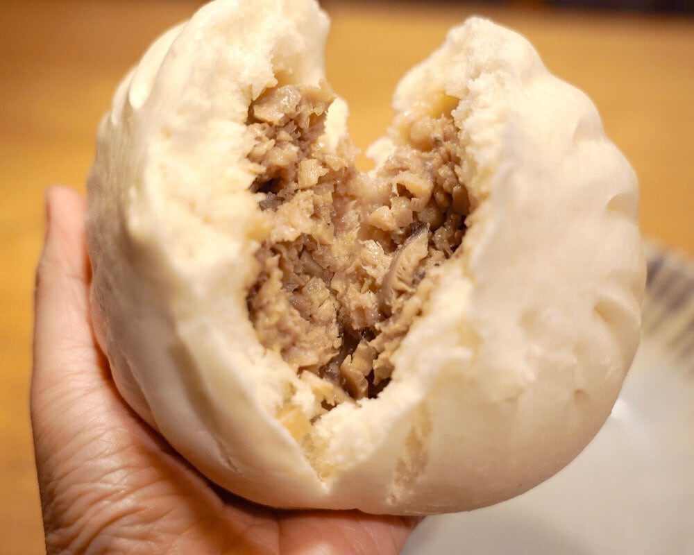 「やまゆりポーク」を原料に使ってつくった大きな肉まん