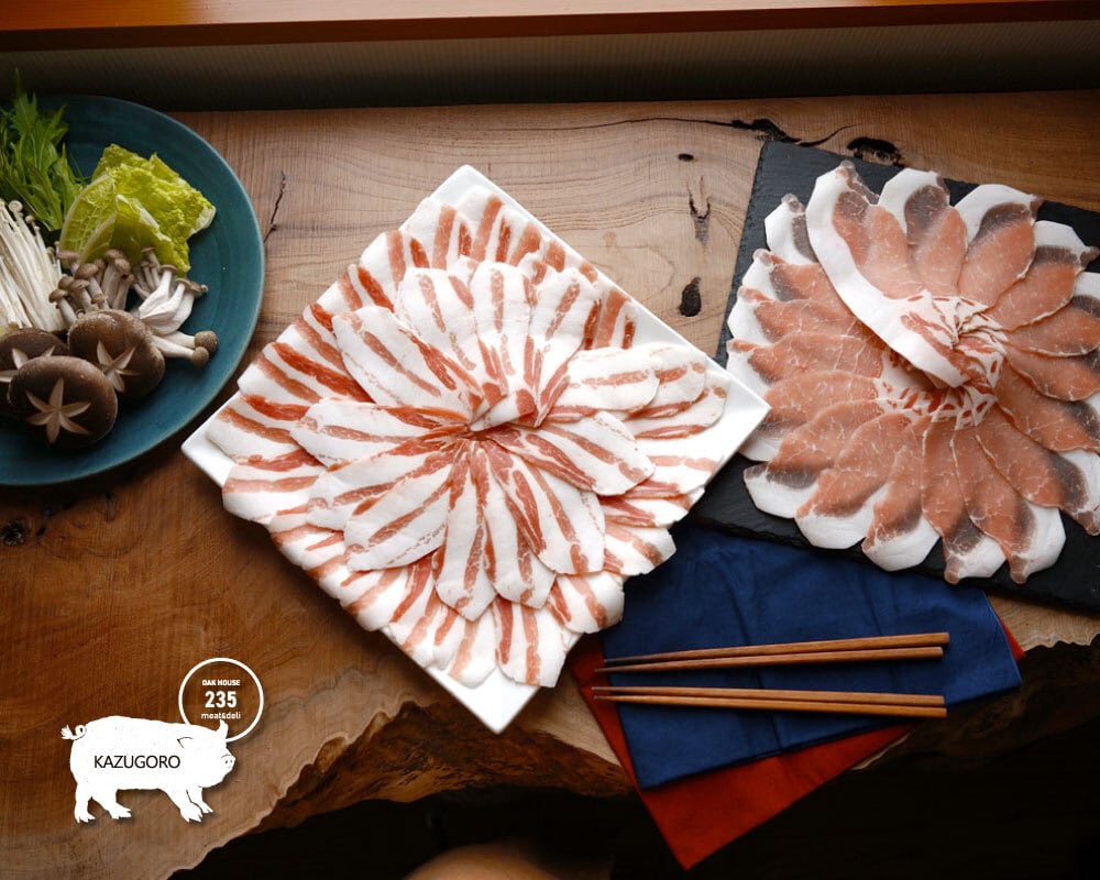 『島豚 KAZUGORO』のバラ肉とロース肉をしゃぶしゃぶ用セットにしました。