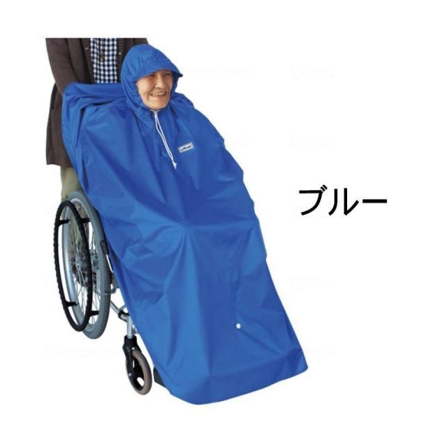車椅子に座ったままで簡単に被ることが出来るレインポンチョです。