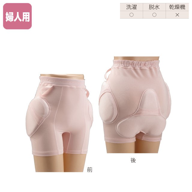 婦人用。衝撃吸収クッションが転倒による大腿部への衝撃を緩和します。クッションは洗濯できるのでいつも清潔に使用できます。