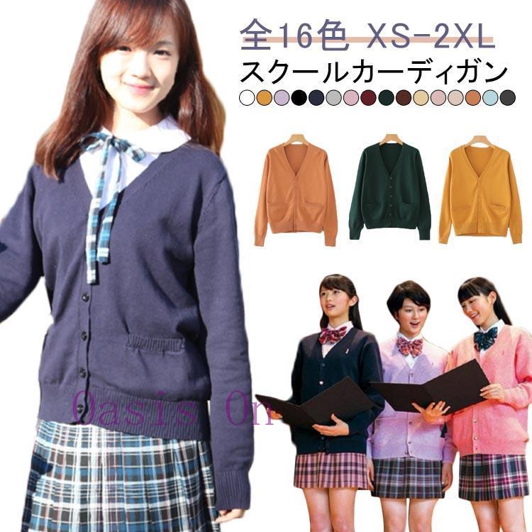 スクールカーディガン スクールセーター 女子 高校生 長袖 学生 レディース イベント コスプレ jk 綿 コットン 厚い 16色 ニット 学園祭 紺