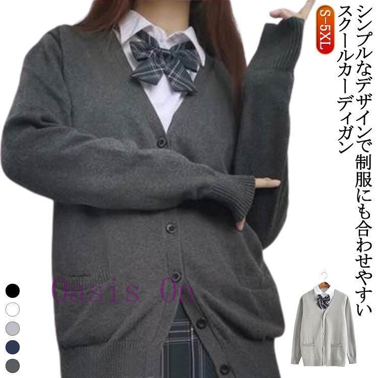 スクールカーディガン Vネック セーター 女子 ニットカーディガン 制服 グレー 羽織り 中学生 綿 コットン キッズ 学生 学生服 カーディガン ニ