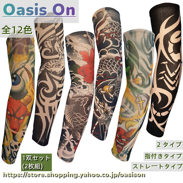 タトゥースリーブ アームカバー アームウォーマー UVカット 紫外線防止 メンズ スリーブ 1双(2枚組) 男女兼用 レディース 簡単着脱 煽り運転対策 入れ墨 和柄