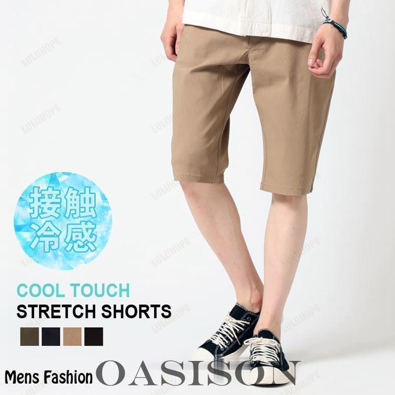 冷感 ストレッチ ハーフパンツ ショートパンツ メンズ 短パン カジュアルパンツ ピケ イージーパンツ 無地