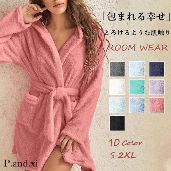 ルームウエア レディース もこもこ 前開きロングカーディガン/フード付きガウン パジャマ 前開きロングカーディガン モコモコ 着る毛布 部屋着 長袖 あったか