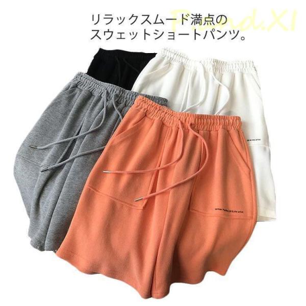 ショートパンツ レディース スウェットパンツ ハーフパンツ 五分丈 ボトムス 短パン ロゴ プリント かわいい ウエストゴム リラックス ショーパン