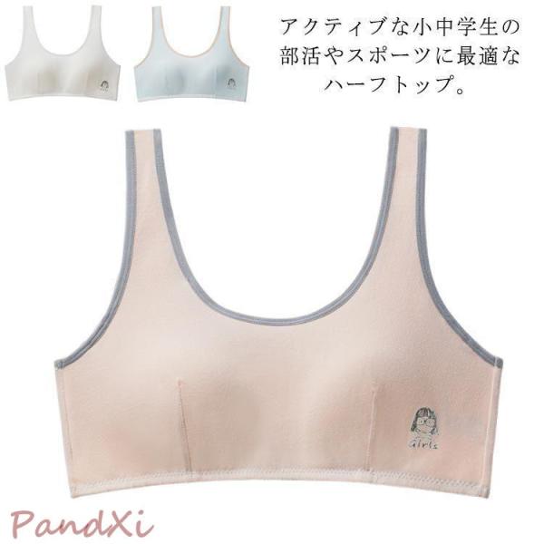 ブラジャー ハーフトップ ガールズ ノンワイヤー 子供用 カップ付 タンクトップ ジュニアブラ 小学生 中学生 女の子 インナー 薄手 スポーツブラ