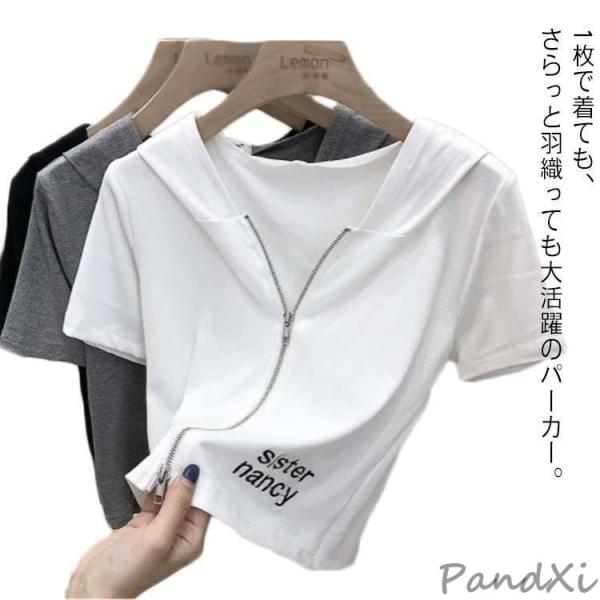 半袖 フード付き ジップアップ トップス 夏物 Tシャツ レディース 大人気 パーカー 新作 カジュアル 韓国 薄手 無地