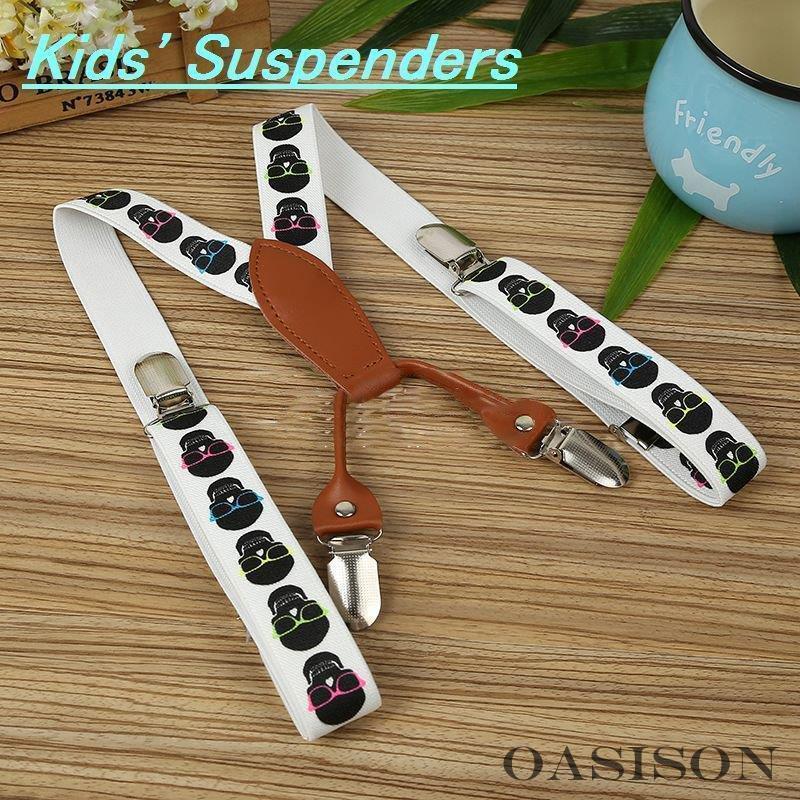 サスペンダー キッズ 男の子 女の子 吊りバンド ファッション小物 4点留め 長さ65cm 幅2.5cm スカル サングラス 白 黒 インフォーマル