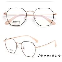 伊達メガネ 眼鏡 レディース レンズあり メタルフレーム 細フレーム 多角形 8角形 バイカラー ツートンカラー おしゃれ 個性