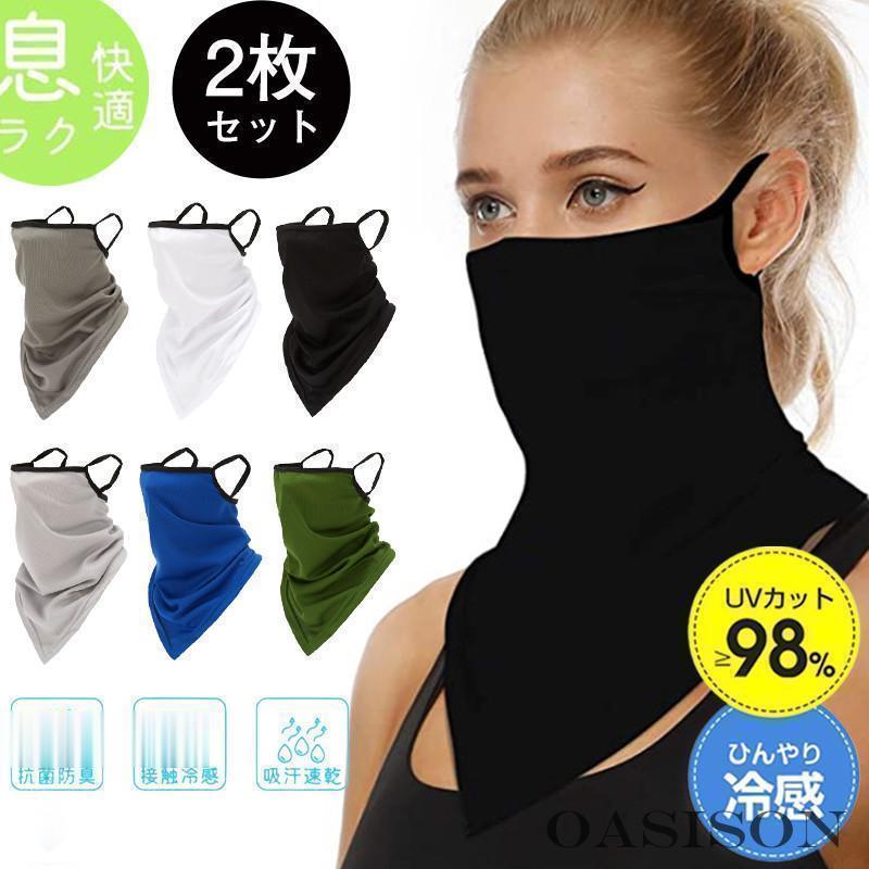 フェイスカバー 冷感マスク ひんやり 2枚セット メッシュ フェイスマスク ネックガードカット 耳かけ 紫外線対策 日焼け防止 自転車 男女兼用