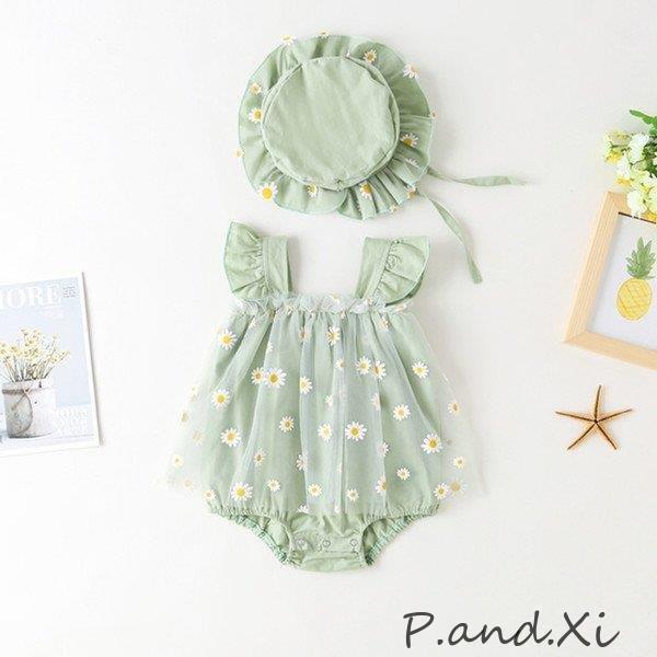韓国子供服 カバーオール ロンパース ベビー服 女の子 子供服 ベビー 新生児 綿 お部屋着 出産祝い 夏 66 73 80 90cm 七五三 初節句 結婚式 誕生日 帽子付け