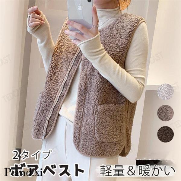 フリースベスト インナーベスト 前開きベスト レディース ボアベスト 裏起毛 トップス アウター 可愛い ポケット付き モコモコ 暖かい 30代40代50代