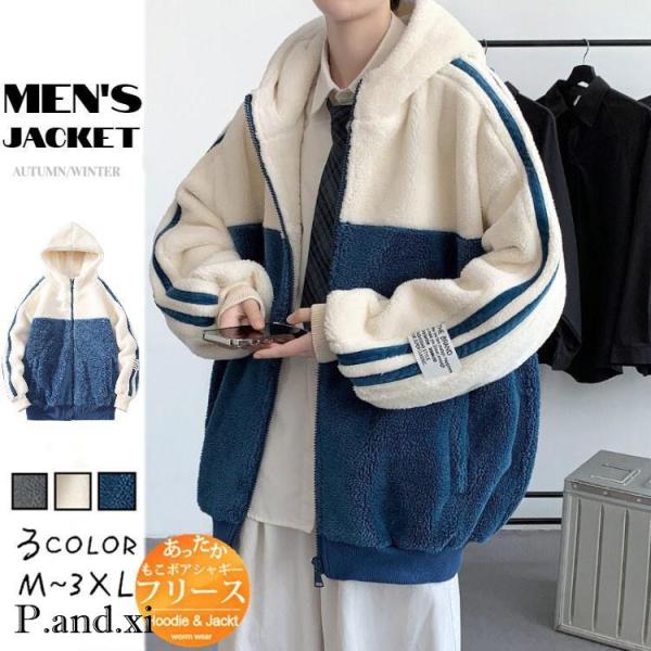 フリースジャケット メンズ アウター ボアジャケット 大きいサイズ フリース 防寒ジャケット 暖かい ボアブルソン カジュアル 厚手 保温 もこもこ フード付き