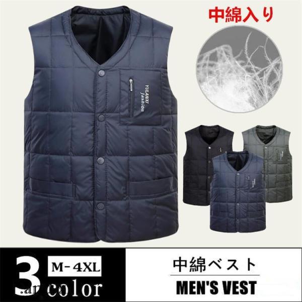 ベスト メンズ 中綿ダウンベスト アウター 秋冬 防寒 暖かい 中綿ベスト 中綿入り スタンドカラー 軽量 カジュアル 前開き 大きいサイズ