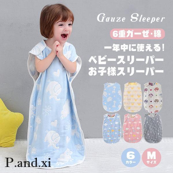 スリーパー 6重ガーゼ コットン ベビー 赤ちゃん 新生児 キッズ パジャマ 出産祝い プレゼント お昼寝 吸水速乾 可愛い シンプル 1才2才3才4才5才6才