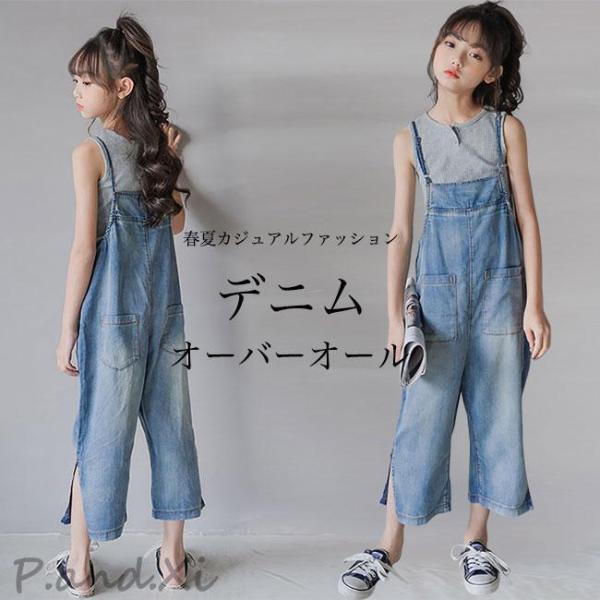 子供 デニムサロペット 夏 女の子 オーバーオール ゆったり デニム ストーンウォッシュ キッズ サロペットパンツ 体型カバー オールインワン 女児