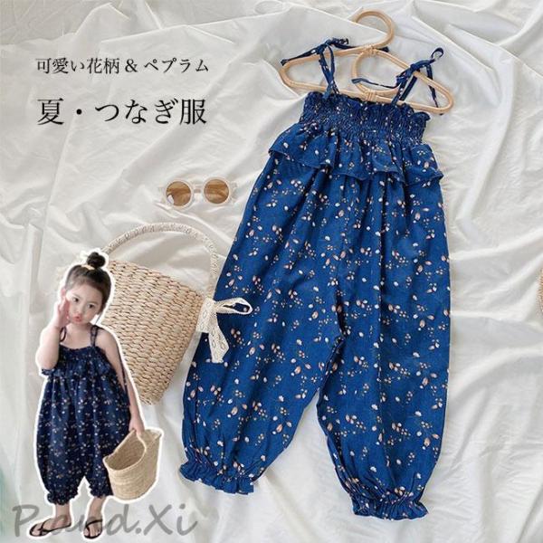 女の子 つなぎ ノースリーブ サロペット 子供 コンビネゾン キッズ 夏 オーバーオール 花柄 袖なし キャミ 女児 オールインワン ゆったり