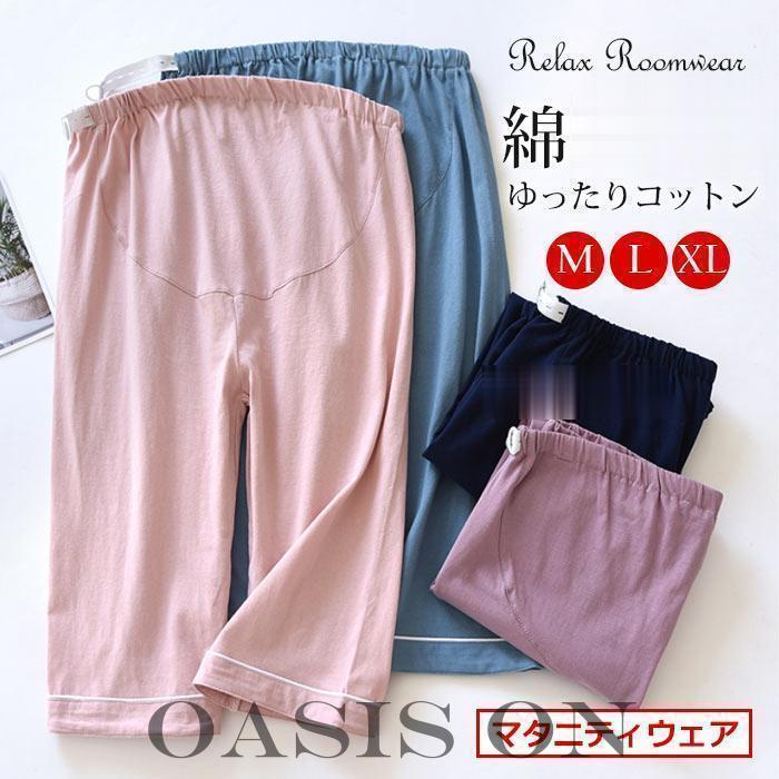 マタニティ パジャマ 夏 ルーム パンツ 綿 妊娠 婦人 ママ 産前 産後 ストレッチ ルームパンツ ウエスト 調節可 無地 コットン・綿 夏 七分丈 ハーフズボン