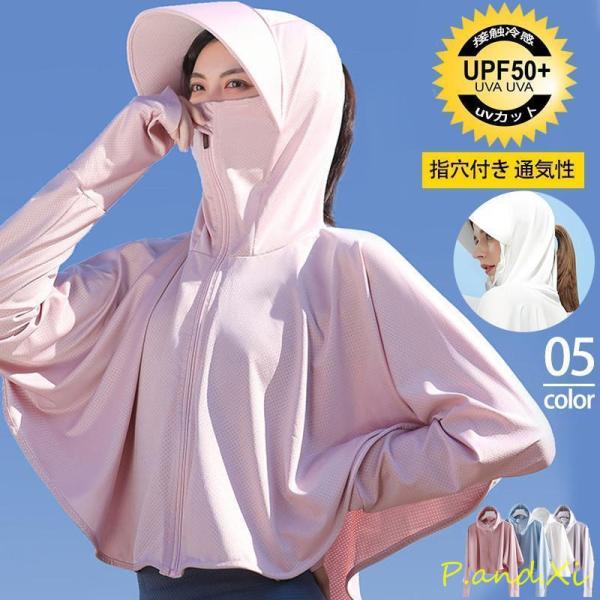 ラッシュガード レディース ラッシュパーカー UPF50+ 紫外線対策 接触冷感 ひんやり 日焼け止め uvカット 指穴付き 通気性 薄手 自転車 夏