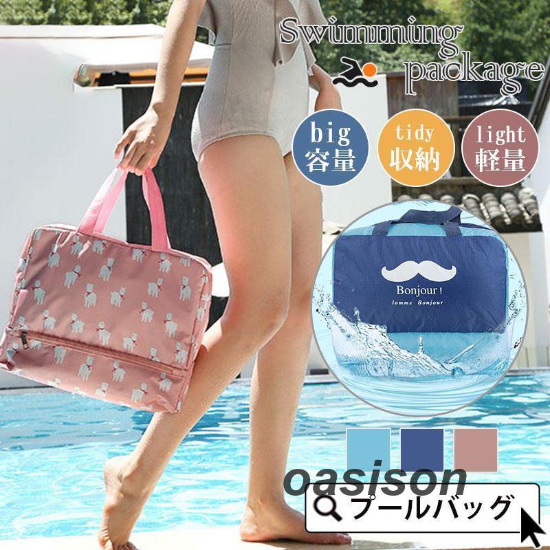 プールバッグ ビーチバッグ スイミングバッグ スクール水着入れ 大容量 水泳バック 乾湿分離 大学生 高校生 収納 折り畳み 幅広 シンプル