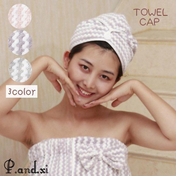 タオルキャップ ヘアドライ 吸水 マイクロファイバー ヘアキャップ もこもこ ふわふわ 波柄 バス用品 バスグッズ お風呂 海水浴 プール 日用品 生
