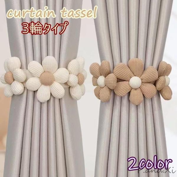 カーテンタッセル 3輪タイプ カーテン留め カーテン用品 インテリア 収納 カーテンホルダー フラワー お花 可愛い おしゃれ シンプル 立体的 模様