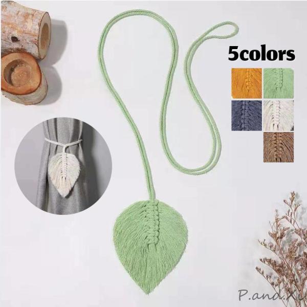 カーテンタッセル カーテンホルダー カーテンバックル カーテン留め インテリア雑貨 カーテンストラップ リーフモチーフ フリンジ ホワイト グレー ロ