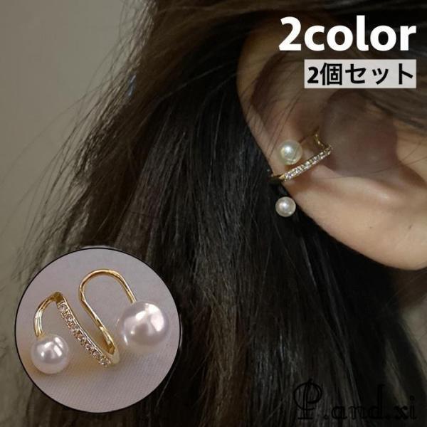 イヤーカフ 2個セット イヤークリップ レディース 女性 アクセサリー フェイクパール パール調 ラインストーン お洒落 大人可愛い プレゼント ギフ