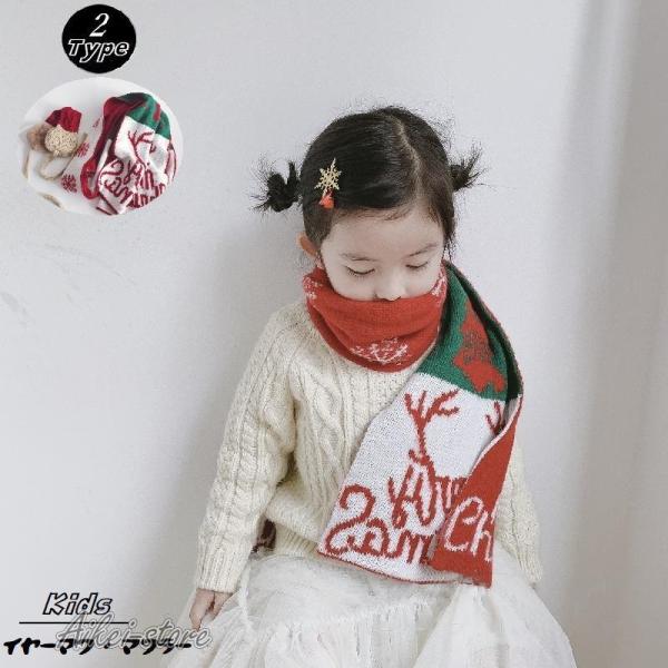 マフラー イヤーマフ キッズ 雪の結晶 トナカイ角 あご紐 ファー ストール ふわふわ 防寒 秋 冬 クリスマスギフト プレゼント 贈り物 子供用 レ