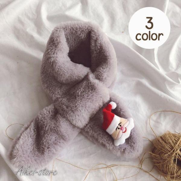 マフラー キッズ 女の子 男の子 子供用 フリース フェイクファー 無地 ワンポイント ファッション小物 かわいい あったかい 暖かい クリスマス サ