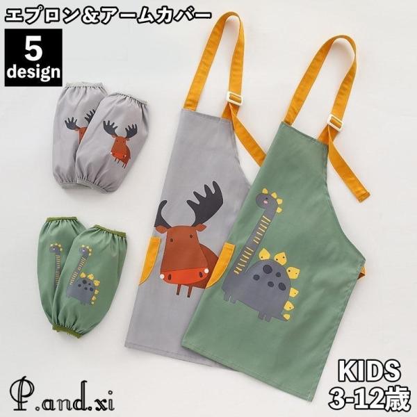 エプロン アームカバー 2点セット 子供用 キッズ 女の子 男の子 胸当てエプロン 首掛け 前掛け キッチン用品 雑貨 汚れ防止 キッチン 台所 掃除
