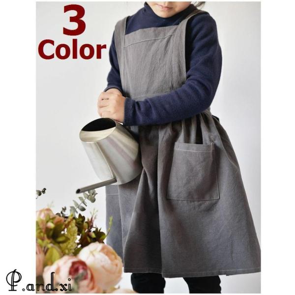 子供用 エプロン 前掛け ポケット付き ウエスト切り替え キッチン 料理 ガーデニング 工作 作業 可愛い かわいい ガーリー シンプル 無地 単色
