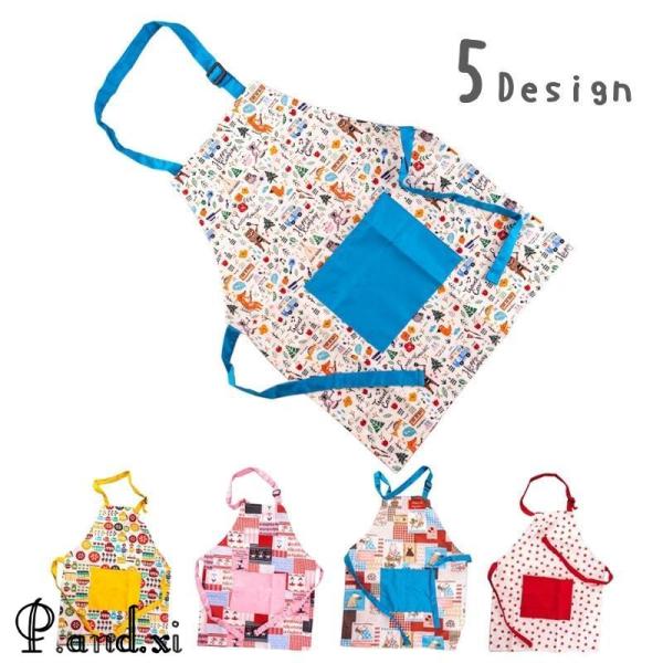 キッズエプロン エプロン 首掛け キッズ 子供用 男の子 女の子 台所用品 キッチン用品 キッチン雑貨 ポケット 総柄 かわいい