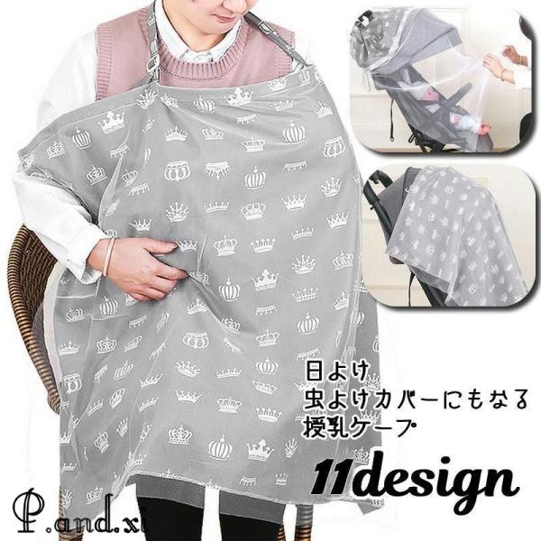 授乳ケープ 授乳エプロン カバー 肩紐長さ調節可能 コンパクト 2WAY ベビーカーカバー 日よけ対策 虫よけ お散歩 お出かけ 外出グッズ プリント
