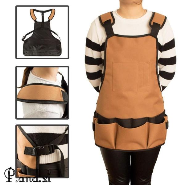 多機能なマルチポケット型のガーデニングエプロン。耐荷重10Kg、サイズ調節機能付き。