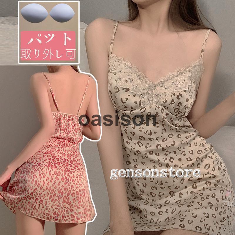 ランジェリー レース レオパード柄 スリップ パット付きキャミワンピース ピンク 下着インナー レディース ベビードール 部屋着 ギフト プレゼント