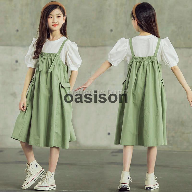 サロペットスカート キッズ サスペンダースカート 無地 フレア おしゃれ 可愛い ふんわり ロング丈 ジュニア 子供 カジュアル 春夏