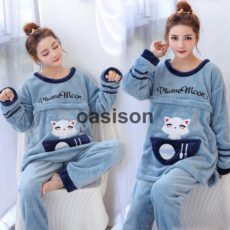 マタニティ パジャマ ルームウェア 冬 可愛い動物柄 フリース もこもこ 長袖 授乳服 上下セット あったか 産前産後 妊婦服 授乳口付き ウエスト調整可能