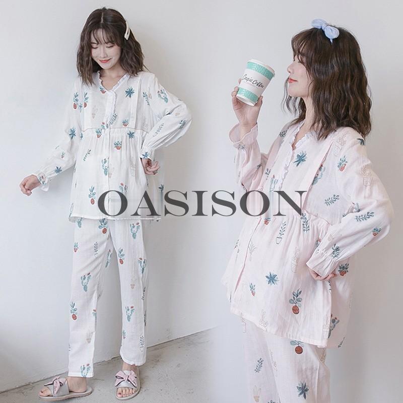 2点パジャマ レディース マタニティーパジャマ 授乳服 春夏秋 長袖 マタニティーパジャマ 綿かせ 花柄 妊娠 上下セット ルームウェア 部屋着 ママ
