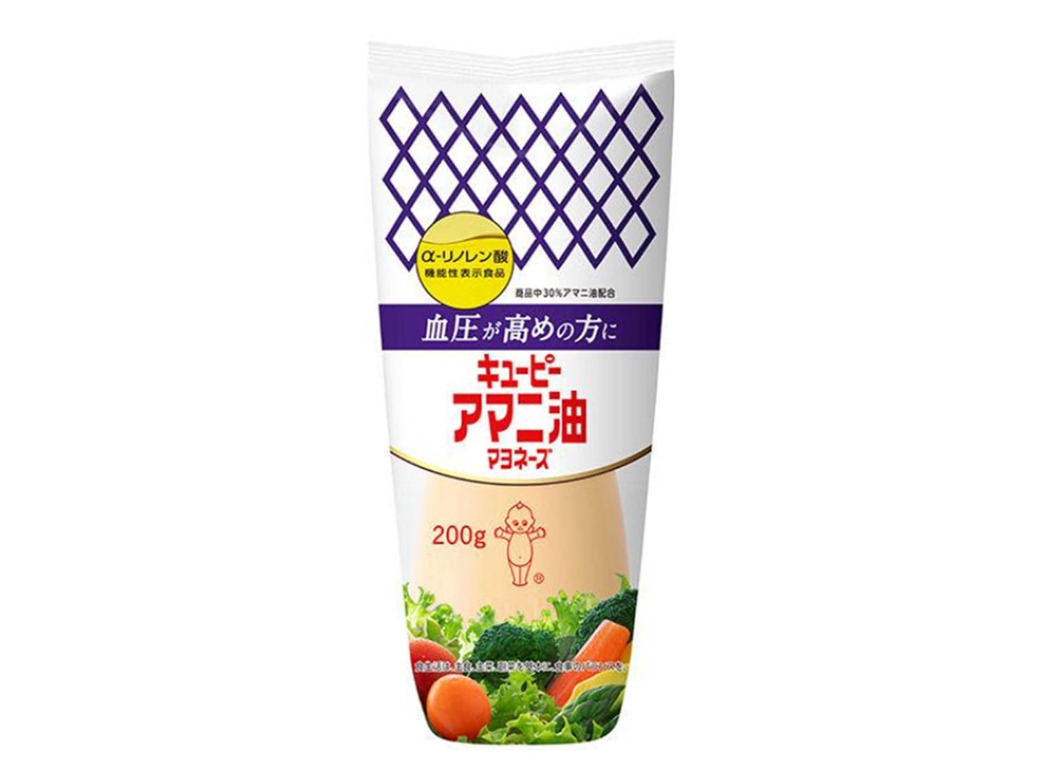 - キューピーアマニ油マヨネーズは健康を意識したマヨネーズです。 本品に含まれているα-リノレン酸は1日当たり2.6g摂取すると 血圧が高めの方に適した機能があると報告されています。 マヨネーズ15g(約大さじ一杯)で一日の摂取目標量のα-リノレン酸2.6gを摂ることができます