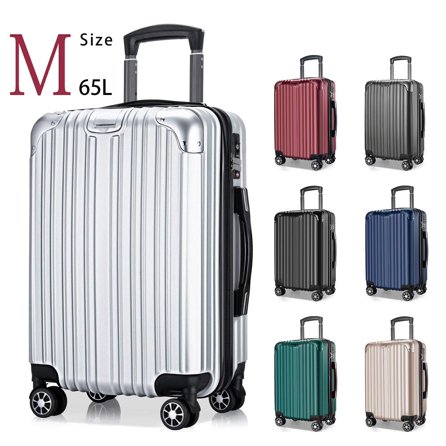 スーツケース キャリーケース 65L Mサイズ 6泊7日 大容量 軽量 TSAロック搭載 360度回転双輪キャスター 静音輪 人気 キャリーバッグ