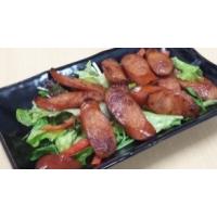 【原材料名】豚肉、結着材料(でん粉、大豆蛋白、乳蛋白、卵蛋白)、香料、食塩、コチジャン、砂糖、ソルビトール、リン酸塩(Na)、調味料(アミノ酸)、保存料(ソルビン酸K)、pH調整剤、酸化防止剤(エリソルビン酸Na、V.C)、発色剤(亜硝酸Na)、(原材料の一部に牛を含む(ケーシング))