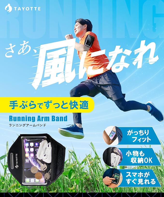 TAYOTTE 公式サイト 箱根駅伝ランナー愛用 ランニング スマホ アームバンド ズレずにフィット スマホケース ポーチ 腕 携帯ホルダー