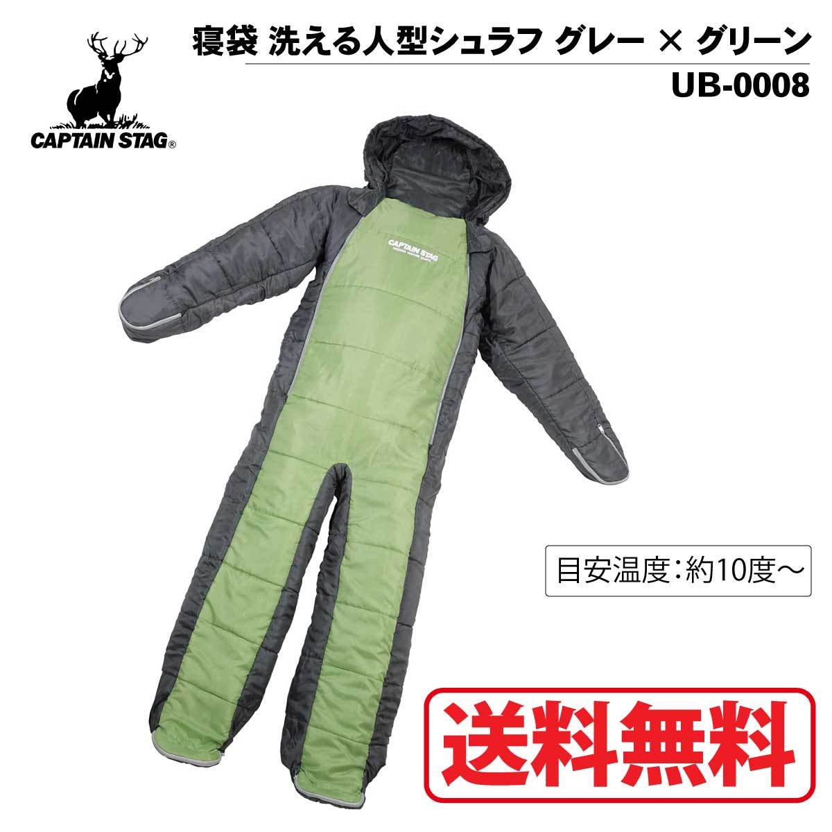キャプテンスタッグ(CAPTAINSTAG) 洗える人型シュラフ 使用温度10度から グレー×グリーン 寝袋 アウトドア キャンプ 野外 ソロ ファミリー テント 防災 車中泊