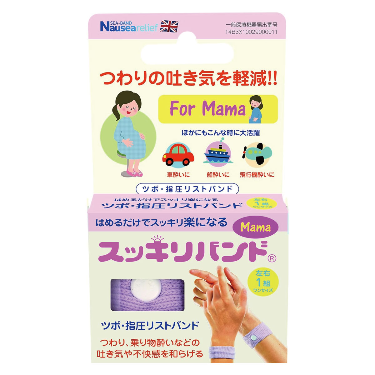 【箱訳あり特価】プレスビー スッキリバンド 酔い止めバンド 妊婦用 つわりバンド ライラック ママ シーバンド 乗り物酔い つわり 車酔い ツボ ツボ押し