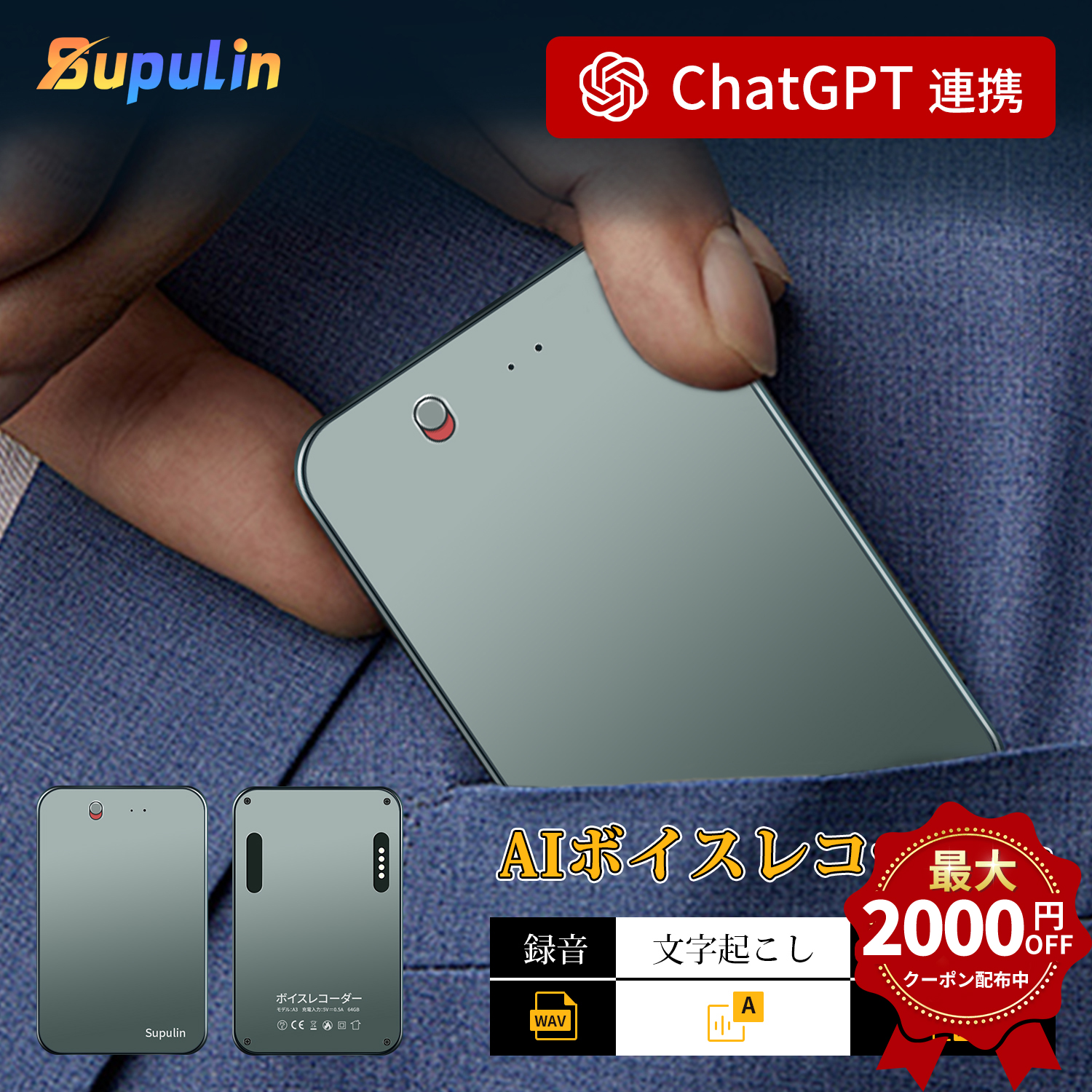 商品名:Supulin AIボイスレコーダー